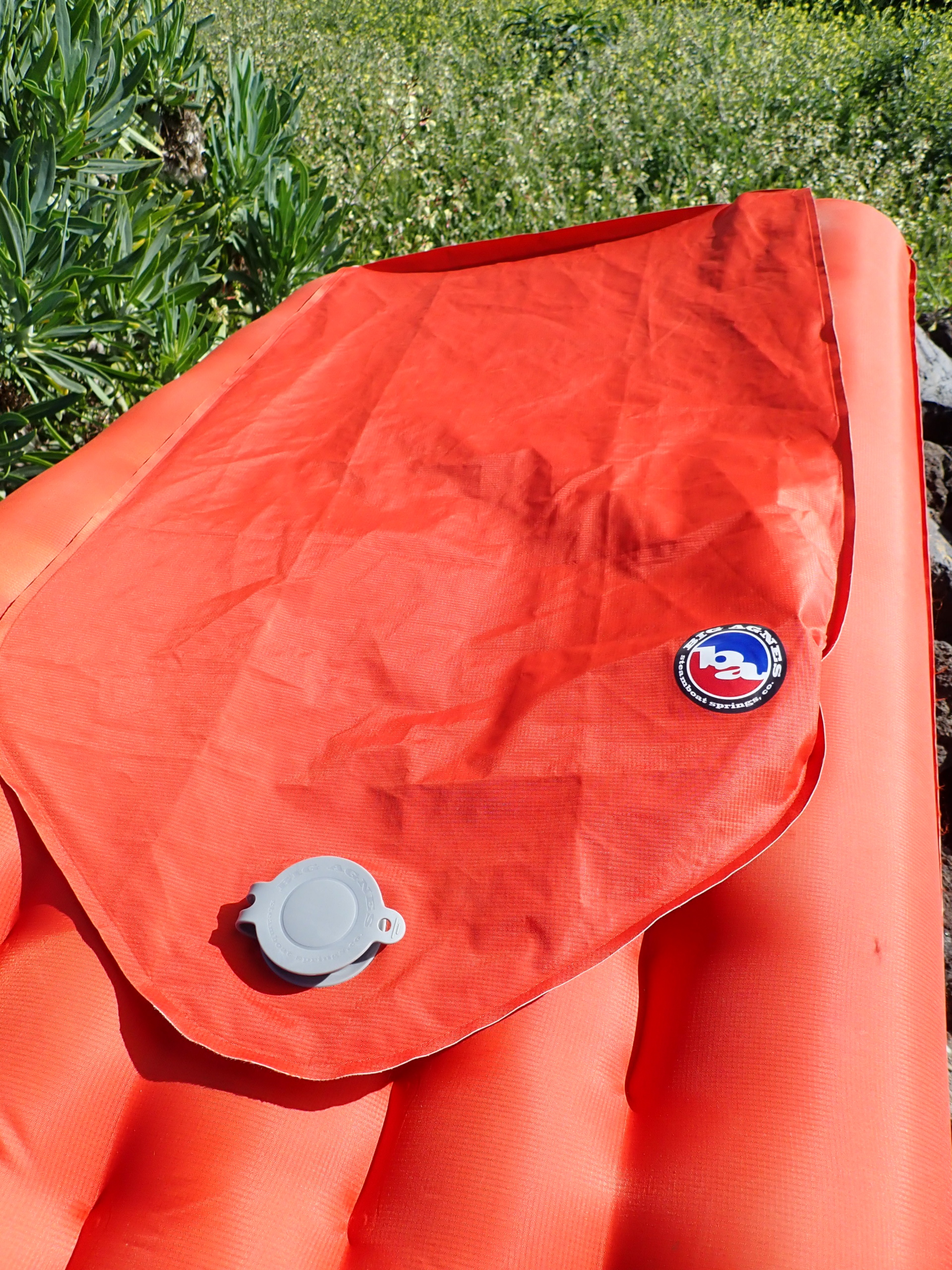 Big Agnes hat diese Luftkammermatte mit ihren Merkmalen auf Langlebigkeit ausgelegt. Auf den ersten Blick und beim ersten Anfassen fällt sofort die qualitativ hochwertige Verarbeitung und das robuste Material auf. Das Obermaterial ist ein doppel-reißfestes Nylon mit einer TPU (Thermoplastische Polyurethane)-Beschichtung. TPU-Materialien zeichnen sich vor allem durch ihre hohe mechanische Festigkeit und ihre sehr gute Abriebfestigkeit aus. Das gleiche Material wurde sogar für den Pack- sowie Aufblassack verwendet. Das macht das Gesamtpaket zwar etwas schwerer aber auch langlebiger. Bei den meisten meiner vorherigen ultraleicht Matratzen musste ich entweder den Packsack austauschen oder zumindest flicken und bisher zeigt dieser Packsack so gut wie keine Gebrauchsspuren.
