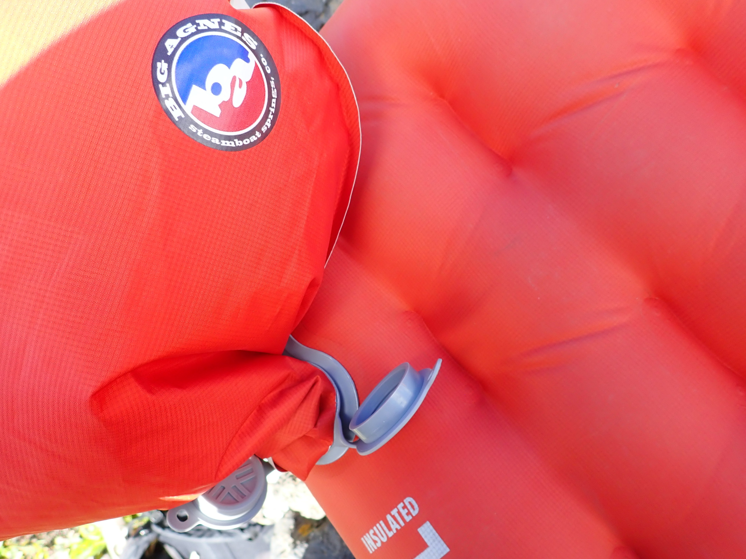 | Big Agnes verwendet wie schon beschrieben die PrimaLoft® Silber-Isolierung und keine raschelnde Folie. Deshalb schließt die Matte im Geräuschtest vergleichsweise gut ab. | Wenn die Matte hart aufgeblasen ist, verdreht sie sich leicht. Dies hat aber keinen Einfluss auf den Schlafkomfort. |